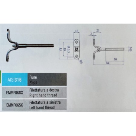 RÓTULA PARA PARED CON ROSCA DE M-6 A IZQUIERDAS PARA BARANDILLAS DE CABLE ref. EMMF06SX