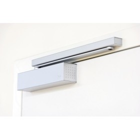 Cierrapuertas de piñón cremallera con fuerza de cierre EN 2/3/4 variando la posición del apoyo del brazo y/o del cuerpo.